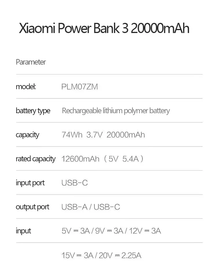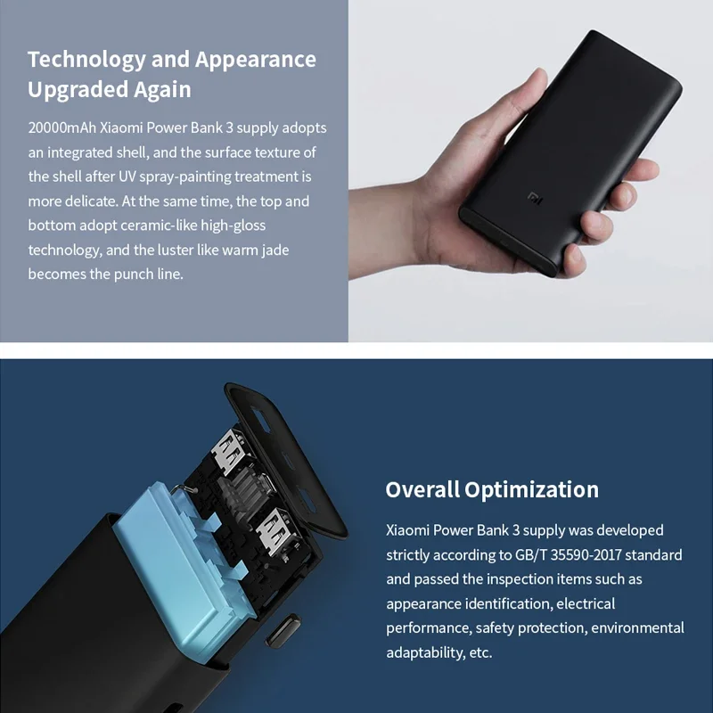 Xiaomi Mi Portable Power Bank 3 20000mAh PLM07ZM 45W Max Fast Charging Extermal Battery Mobile Phone Quick Charger for iPhone 14