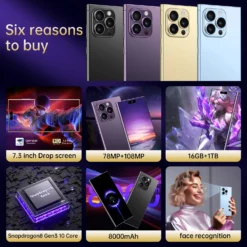 New i16 Pro Max 5G 7.3-inch high-definition Android 14 Snapdragon 8gen3 10core dual SIM 8000mAh unlocking smartphone – 509