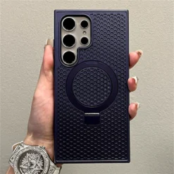Luxury Grid Mesh For Magsafe Magnetic Bracket Phone Case For Samsung S25 Ultra S24 S23FE S22 Plus Dissipation Heat Cooling Cover