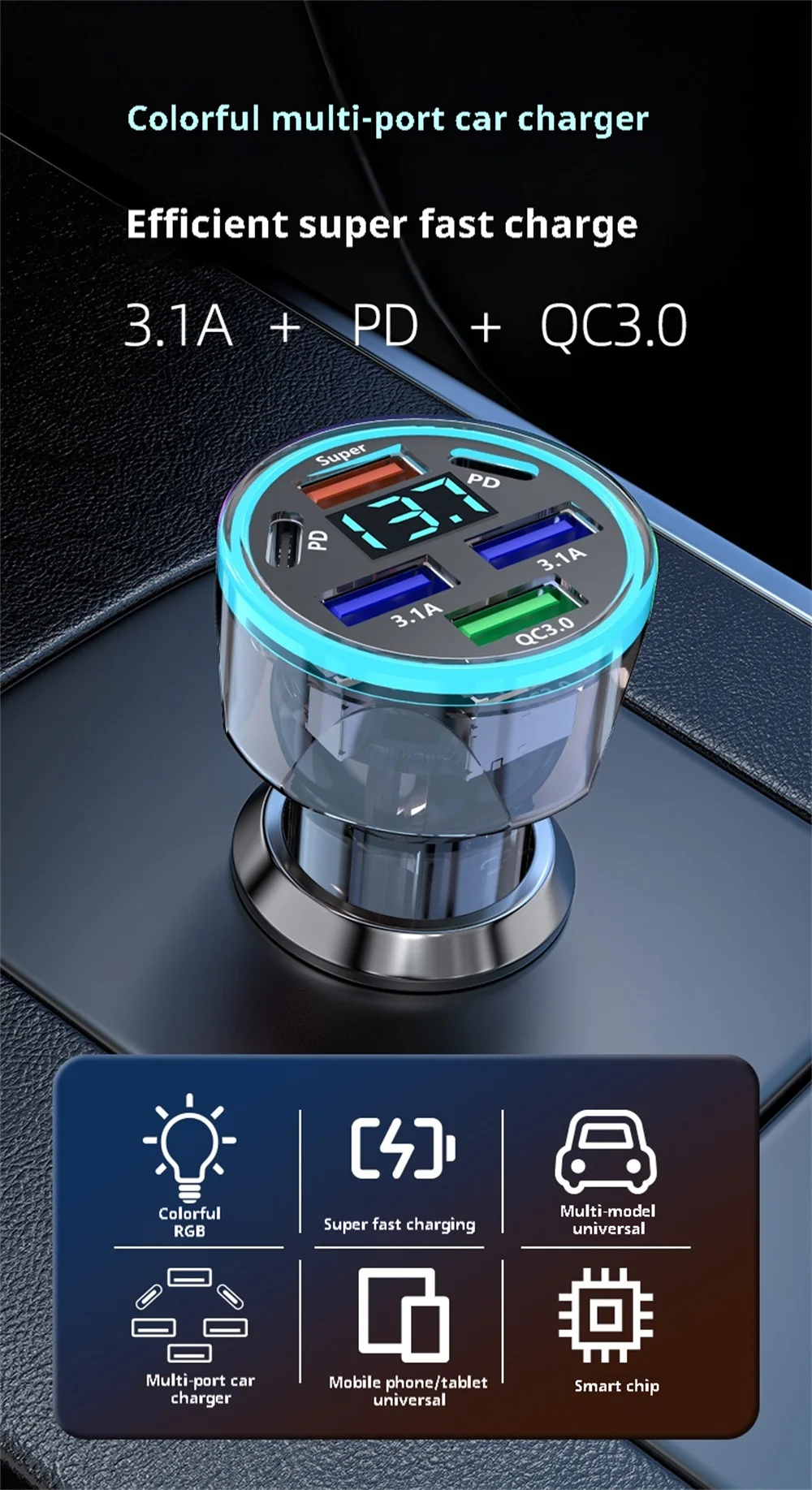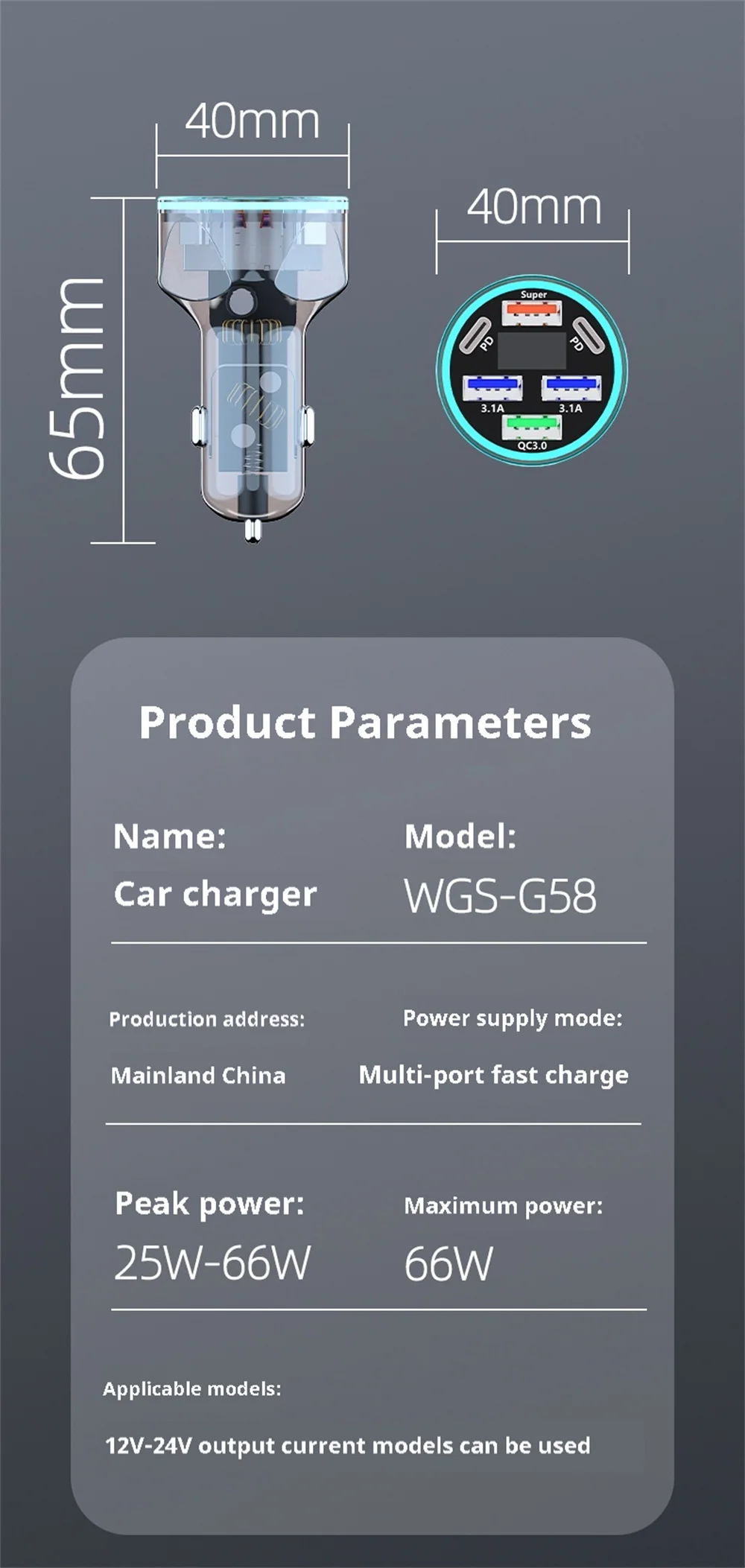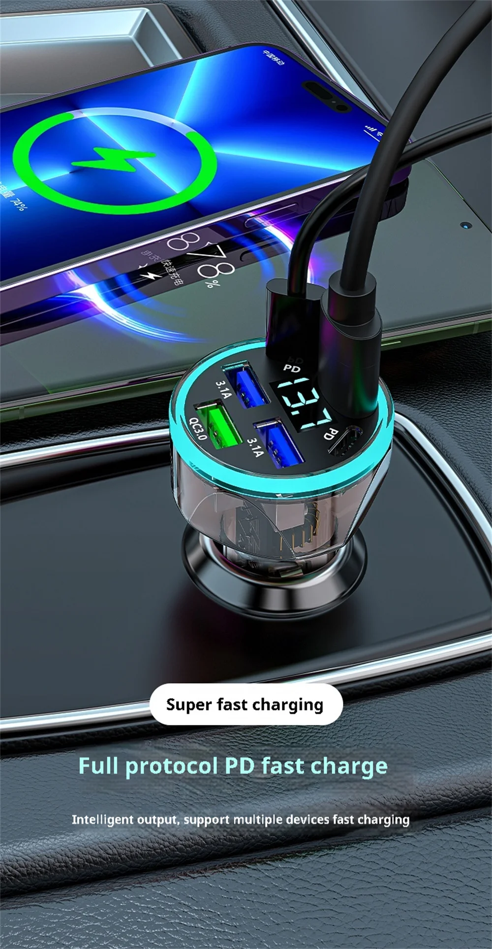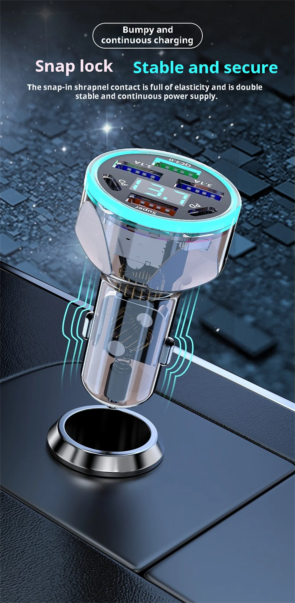 3. QC3.0 Fast Charging: equipped with 4 USB ports and 2 PD Type-C, this car phone charger can provide fast charging for up to 6 different electronic devices simultaneously. With 66W power, it’s compatible with most mainstream smart phones and can quickly charge multiple devices at once.