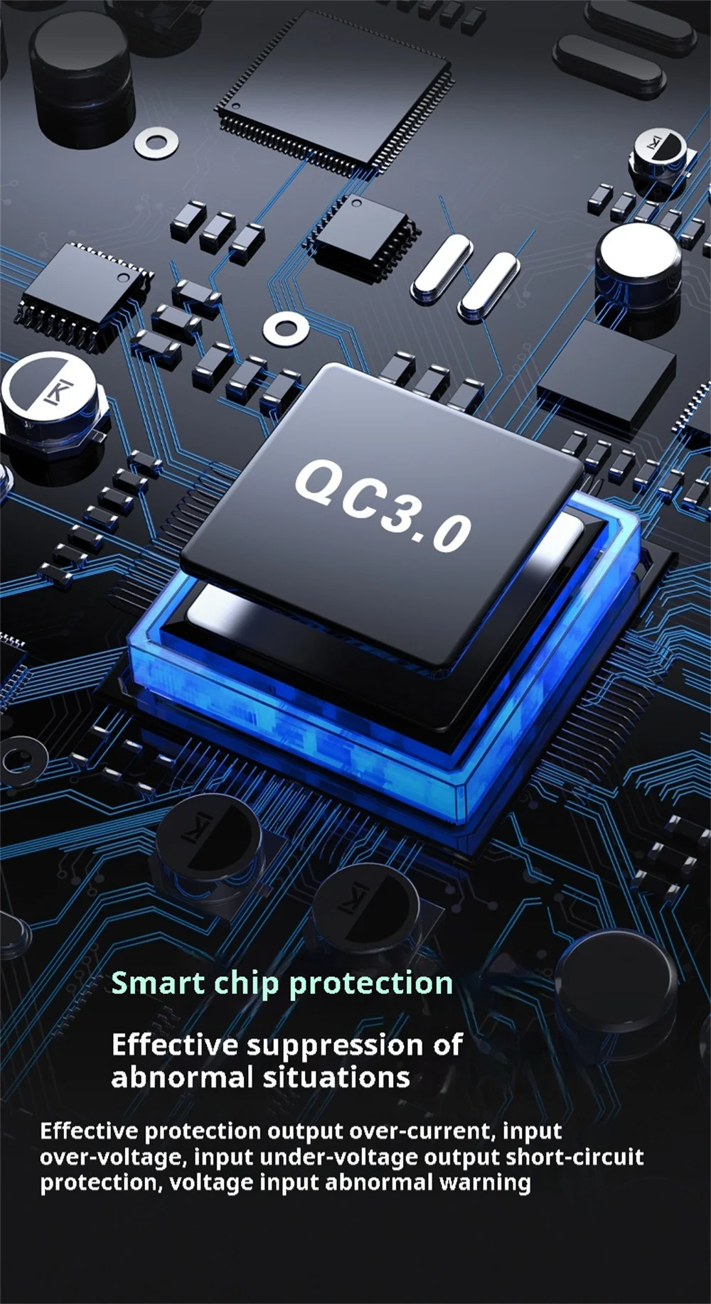 2. Intelligent Chip Protection: With its smart upgradeable main chip, this power adapter offers protection against over voltage, over current, overheating, and short circuits. It also intelligently recognizes electronic devices and adjusts current output accordingly, ensuring safe charging while driving.