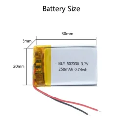 502030 3.7V 250mAh Long-lasting Polymer Lithium Ion Rechargeable Battery for Toys, LED Lights, and Bluetooth Earphones