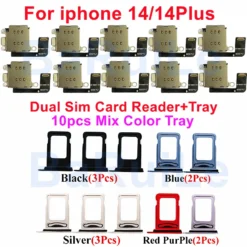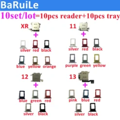 BaRuiLe 10sets For iPhone 11 12 13 Pro Max 14 Plus XR Dual Sim Card Reader Connector Flex Cable + Tray Slot Holder Adapter Part – 509