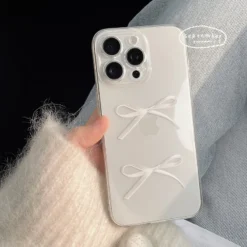 Simplicity Clean Button Bow For iPhone Case 16 15 14 13 12 11 Pro XR XS Max 7 8 Plus Shockproof Soft Phone Y2K Pink Cute Cover – 509