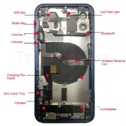 Battery Back for iPhone 12 Housing Glass Cover + Middle Frame + SIM Tray + Side Keys+ Led Flash+ Usb Charging Port+ Small Parts – 509