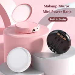 20000mAh Makeup Mirror Power Bank Built in Cable Portable Charger External Battery Powerbank For iPhone 15 Huawei Xiaomi Samsung – 509