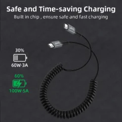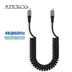 AIXXCO 2.2M USB C 3.2 20Gbps Type C to Type C Spring Cable PD3.1 100W 5A USB-C Cord For MacBook Pro Samsung Xiaomi – 44