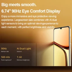 Screen———-6.74″ 90Hz Eye Comfort Display, HD+ 1600×720, 450nits (typ) / 560nits (HBM)