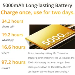 Standard Package: realme C61, transparent case, Type-C cable (realme original), sim card needle.