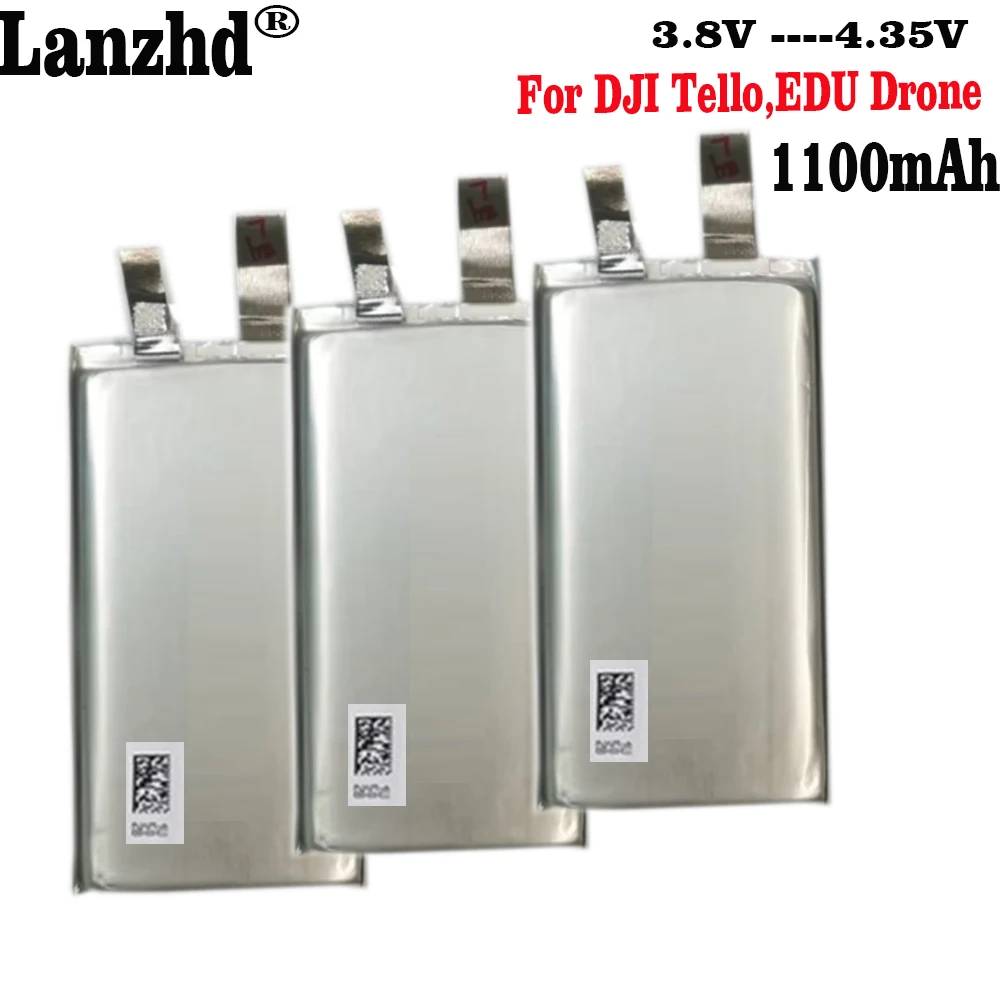 1-12pcs New 3.8V Max 4.35V 1100mAh Li-Polymer DIY Replacement Flight Battery Cell For DJI Tello ,Tello EDU Drone Specification : Brand:Lanzhd Name: High Rate polymer Plum cell Model:For DJI Tello ,Tello EDU Drone Material: Ternary Capacity: 1100mah Ratio: 6C Voltage: 3.8 V Charging cut-off voltage: 4.35V Protection IC technical parameters: overcharge protection 4.20V±0.05V Size:55*23*7.6mm Widely Applications: Use For DJI Tello ,Tello EDU Drone Start power supply, igniter, welding machine, model airplane, model ship, model car, scooter, toy Electric vehicle, Electric Bicycle, Tricycle, scooter, golf trolley, cart, wheelchairs, Medical instrument, Solar supply system,solar panel, energy storage, electric tools, power tools, instruments, LED lighting devices, RC toys, inverter, household appliances and emergent device area, etc.