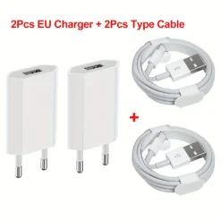 2pc x White EU Plug And 2pc 1M USB A To Type C Cable Only
