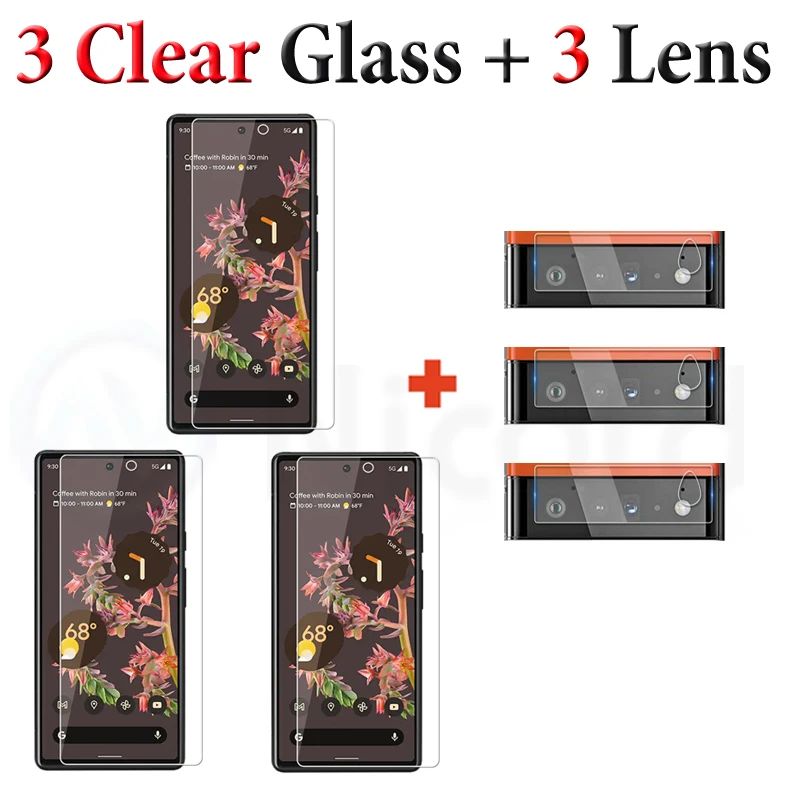 1-3pcs For Google Pixel 6 Glass For Google Pixel 6 Screen Protector Phone Film Transparent Tempered Glass For Pixel 6 Lens Film
