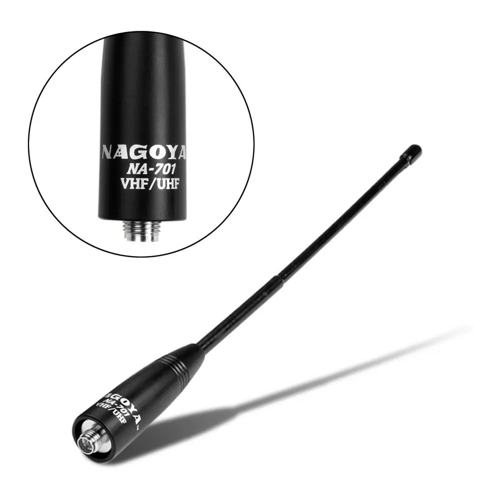 Specifications: Brand: Nagoya Model: NA-701 Connector Type: SMA-Female Frequency Range: VHF/UHF (144/430Mhz) Gain: 2.15dBi Impedance: 50ohm Power Capacity: 10W Features: |Ret Antenna|Diy Cb Antenna|Does A Cb Antenna Need To Be Grounded| **Enhanced Communication with the NA-701 Antenna** The Nagoya NA-701 VHF/UHF antenna is a must-have for any serious two-way radio user. Designed for BaoFeng, TYT, Wouxun, and Hytera walkie talkies, this antenna is a perfect match for a wide range of devices. With a robust SMA-Female connector, it ensures a secure and reliable connection, enhancing your communication experience. The antenna's impressive gain of 2.15dBi allows for a stronger signal, making it ideal for long-range communication and base station setups. **Versatile and Durable Design** The NA-701's robust construction is designed to withstand the rigors of outdoor use. Its 21cm length is compact enough for portability, yet powerful enough to deliver clear signals in various environments. Whether you're in the field or at your base station, this antenna is built to last. Its 50ohm impedance ensures compatibility with a wide range of devices, making it a versatile addition to your communication gear. **Optimized for Performance** This antenna is not just about durability; it's also about performance. The NA-701 is engineered to deliver optimal signal strength, making it a top choice for users seeking a reliable connection. Its 10W power capacity ensures that it can handle the demands of high-powered communication, while its 2.15dBi gain provides a significant boost to your signal. Whether you're looking to improve your CB antenna setup or enhance the range of your walkie talkie, the NA-701 is the go-to choice for those who value performance and reliability.