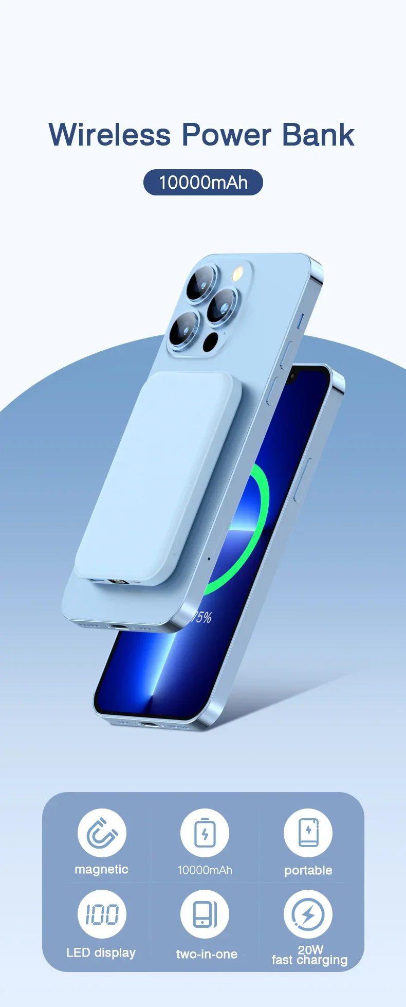 10000mAh Magnetic Power Bank Wireless Portable Fast Charger For Macsafe Powerbank PD20W External Spare Battery For iPhone 15 14 13 12 Xiaomi Samsung