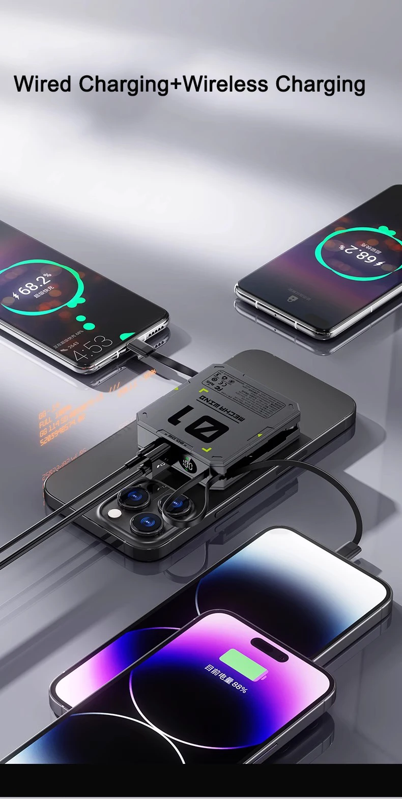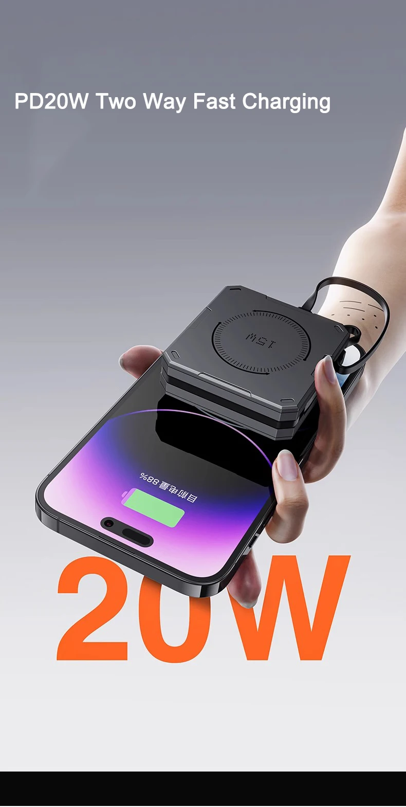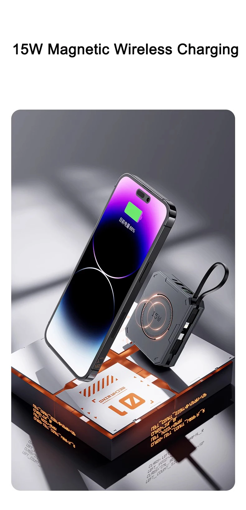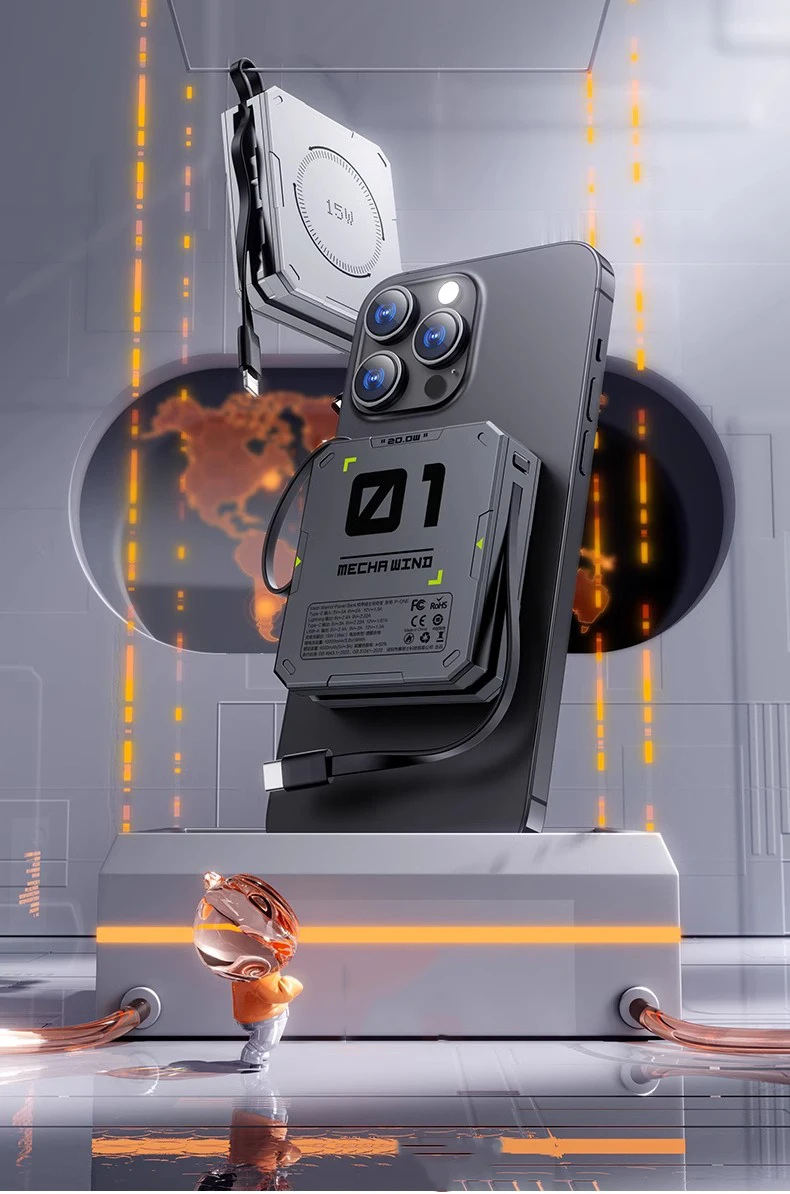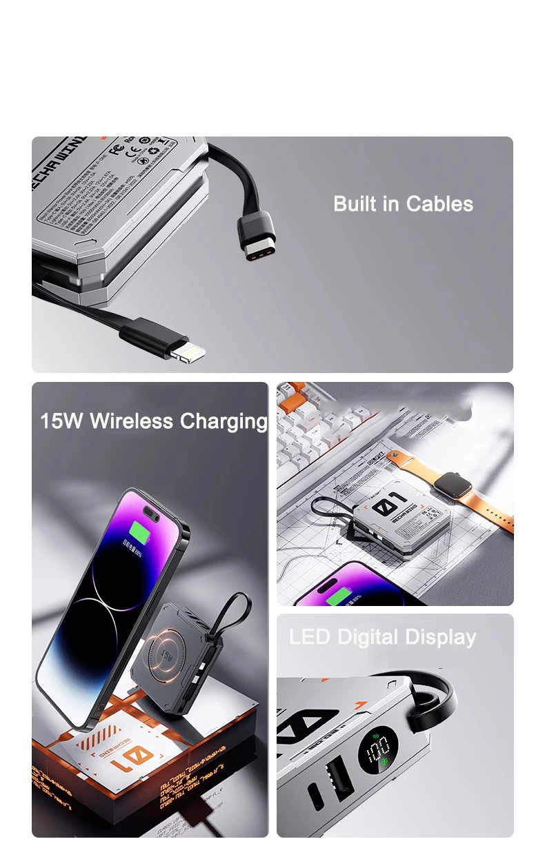 PD 22.5W Fast Charging Power Bank 20000mAh Magnetic Wireless Charger for iPhone 15 14 Samsung Xiaomi Powerbank Built USB C Cable
