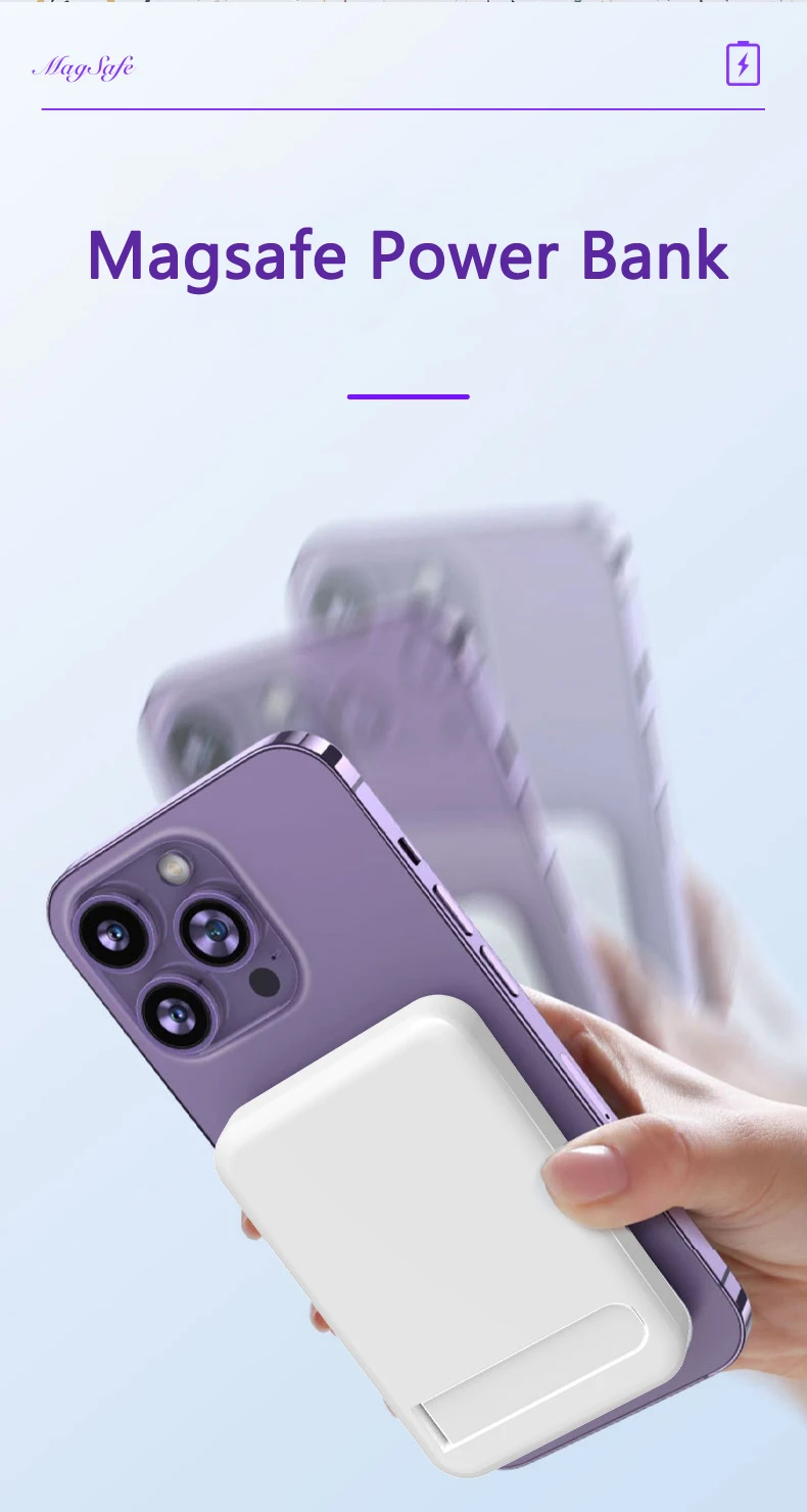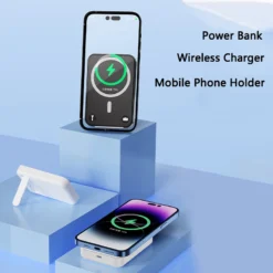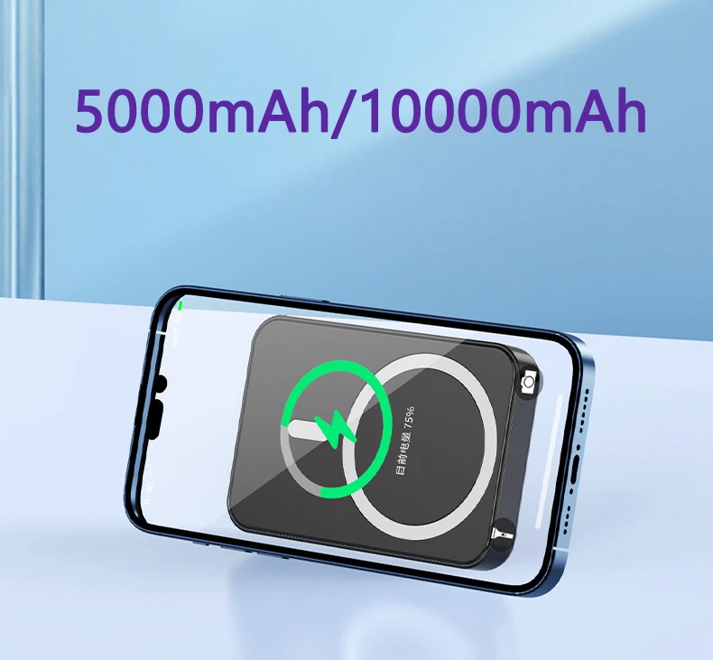 Magnetic Wireless Charger Power Bank 5000mAh/10000mAh Magnetic Ring for iPhone 16 15 14 13 12 11 Samsung Huawei Xiaomi Powerbank with Foldable Mobile Phone Holder Stand
