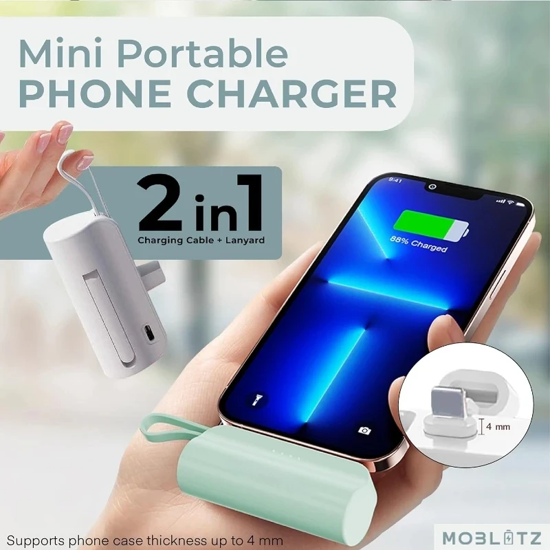 - 5.【Super Safety & Intelligent Control IC】Equipped with a built-in Intelligent Control IC, this small portable charger effectively safeguards your phone’s battery against overcharging, over-voltage, over-current, and short circuits.