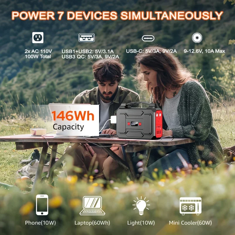 100W 146Wh Portable Power Station With 40W Foldable Solar Panel Charger – 13