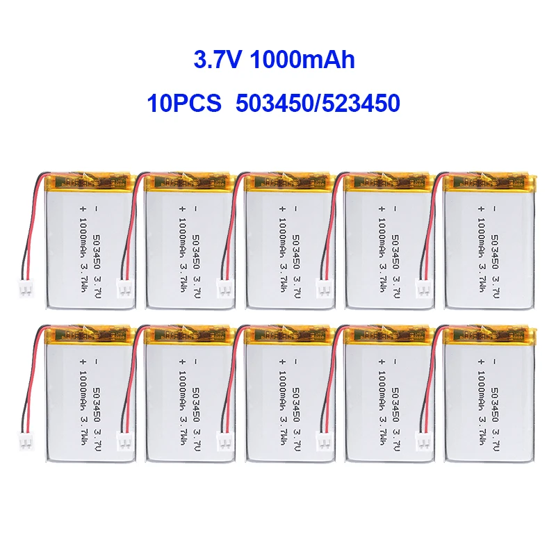 $19.57 | 10 PCs 503450/523450 3,7 V 1000mAh rechargeable lithium ion battery JST PH2.0- 2P lithium polymer battery for GPS smart phone DVD MP5