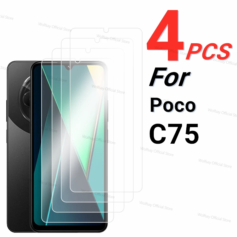 2/4PCS Screen Protector For Xiaomi Poco C75 Tempered Glass Xiaomi Poco C75 Full Glue Protective Phone Glass For Xiaomi Poco C75