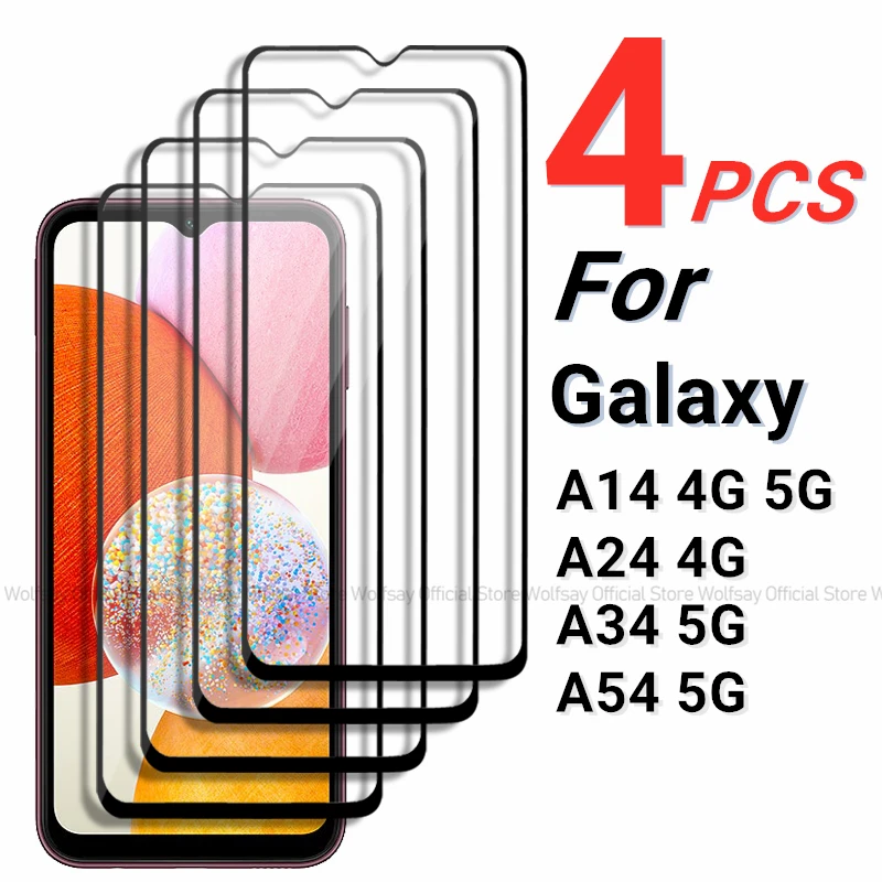 2/4PCS Tempered Glass For Samsung Galaxy A14 5G Screen Protector Samsung Galaxy A14 A24 A34 A54 5G Full Glue Cover Phone Film