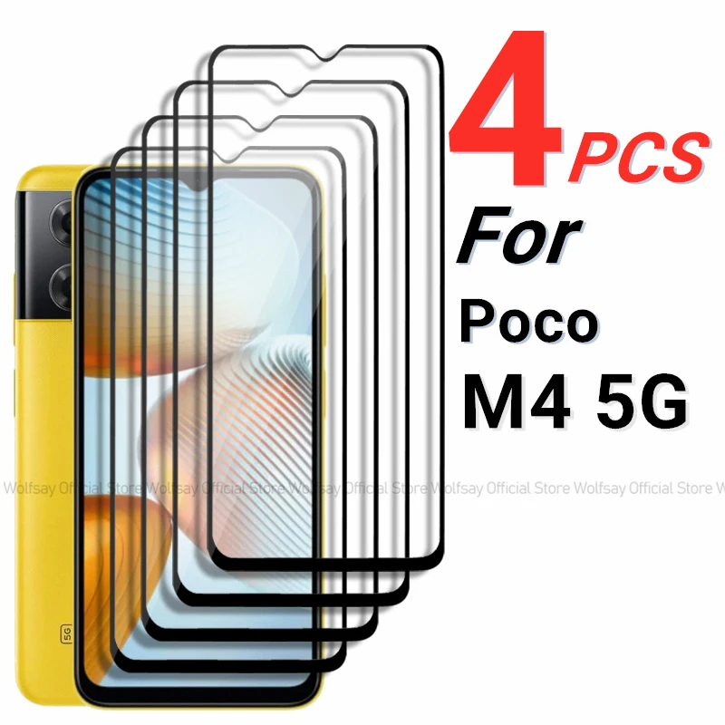 2/4PCS Tempered Glass For Xiaomi Poco M4 5G Screen Protector Xiaomi Poco M4 5G Full Glue Cover Phone Film For Xiaomi Poco M4 5G