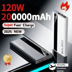 200000mAh High Capacity Portable Power Bank 120W Fast Charging Spare External Battery For iPhone 14 15 Huawei Samsung Xiaomi