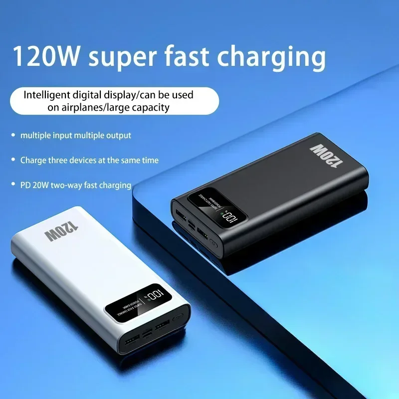 Specifications: Capacity: 200000mAh Fast Charging: 120W Display: Digital Input Interfaces: Micro USB, USB Type C, Lightning Output Interfaces: USB-A, USB-Type C Battery Type: Li-polymer Certification: CE Features: |Power Bank Fast Charging 120w| **Ultimate Power Solution** The 200000mAh Large Capacity Power Bank is the ultimate power solution for all your electronic devices. With a robust Li-polymer battery, this power bank ensures long-lasting power, making it ideal for those who are constantly on the move. The power bank's sleek design and portability make it a perfect companion for your daily commute or travels. The digital display provides real-time information about the remaining battery life, allowing you to stay informed and plan your charging needs accordingly. **Fast Charging Capability** Equipped with a 120W fast charging technology, this power bank is capable of charging your devices at a rapid pace. Whether you're in a hurry or need to top up your phone quickly, the power bank's high-speed charging capability will have you powered up in no time. The power bank's versatility is further enhanced by its multiple input and output interfaces, including Micro USB, USB Type C, and Lightning, ensuring compatibility with a wide range of devices. **Durable and Certified** The power bank's durability is unmatched, thanks to its robust build and CE certification. It's designed to withstand the rigors of daily use, making it a reliable companion for all your charging needs. The power bank's flashlight feature adds an extra layer of convenience, allowing you to navigate in low-light conditions. Whether you're an for iPhone, Samsung, or Huawei user, this power bank is the perfect accessory to keep your devices charged and ready to go.