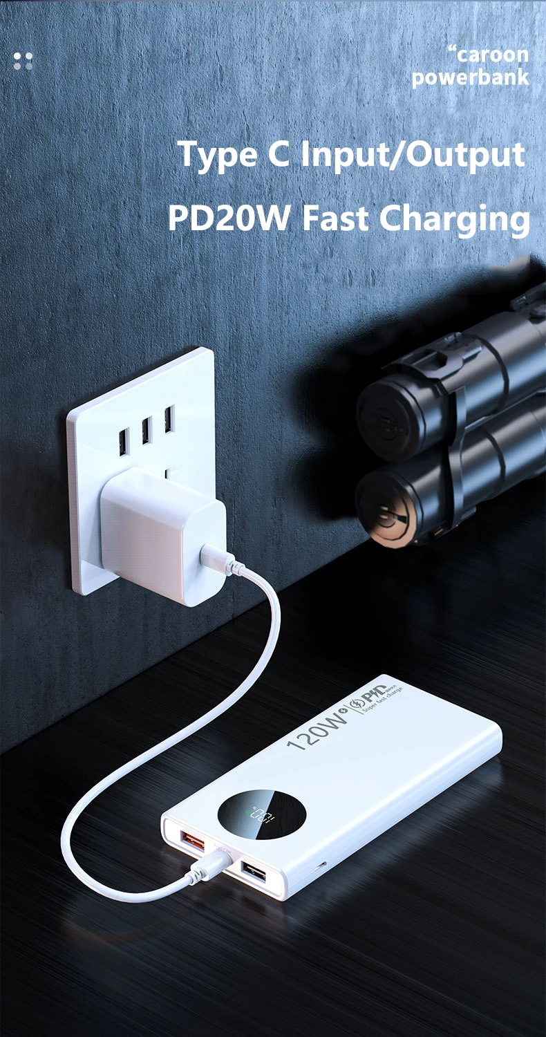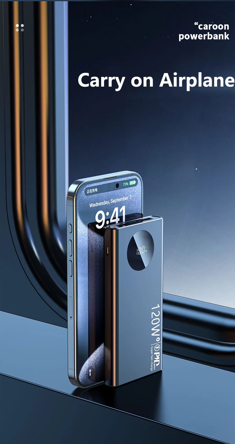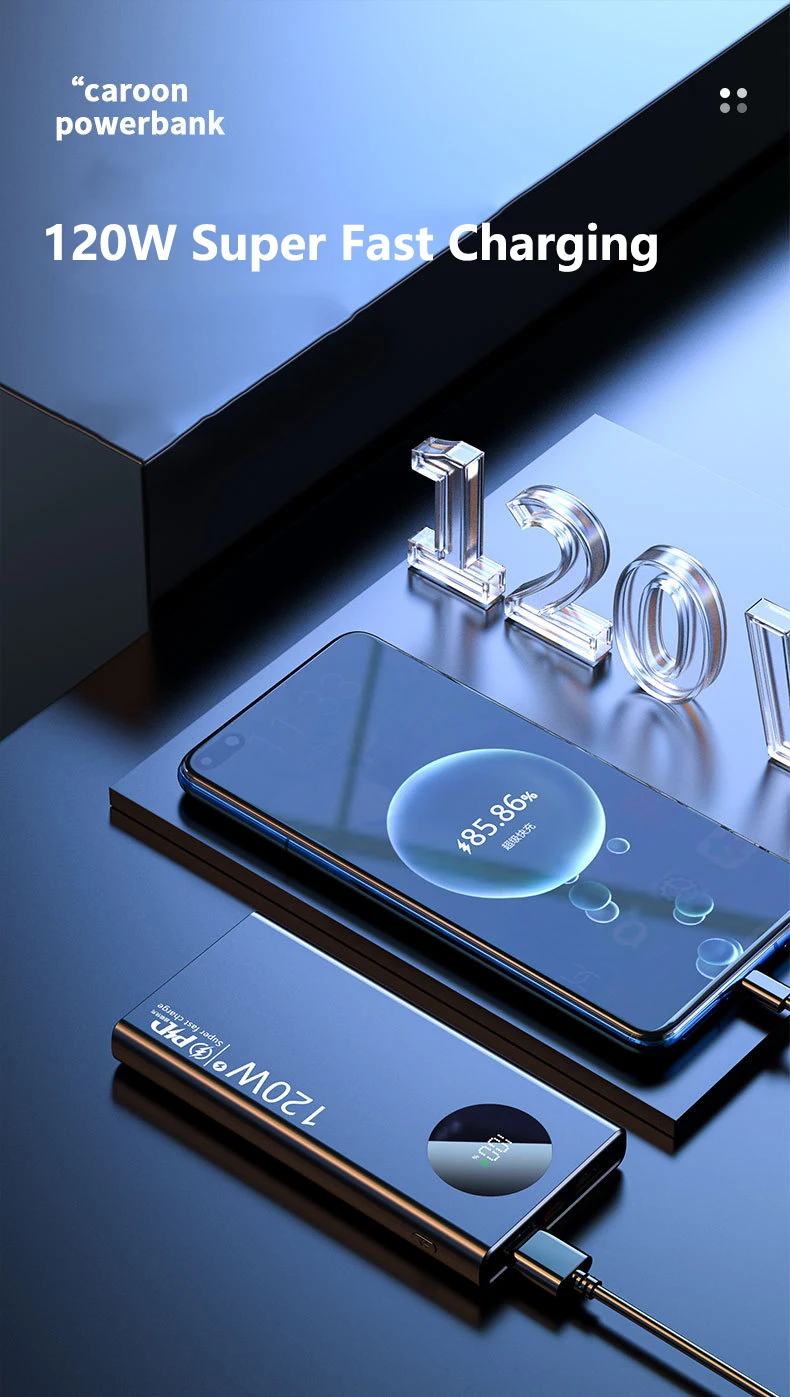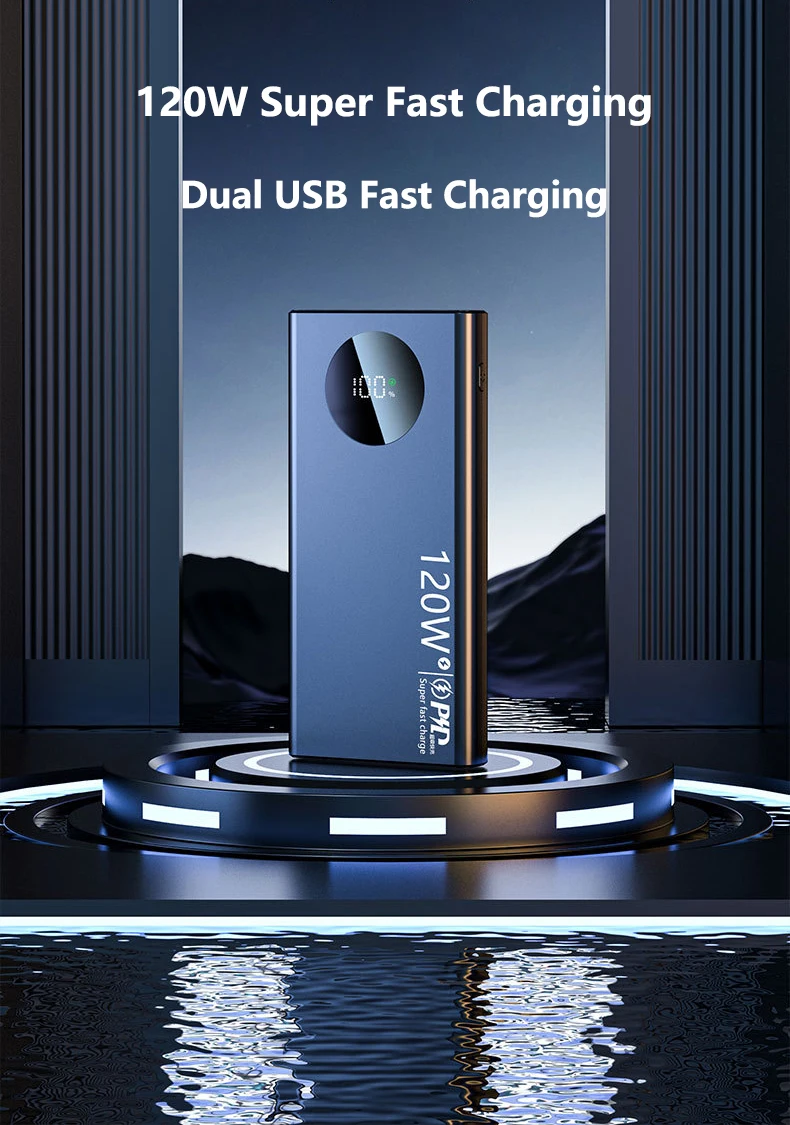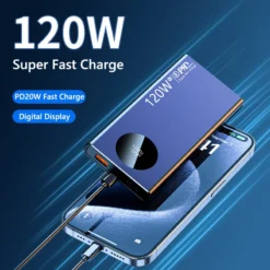 120W Fast Charging Power Bank 200000mAh Large Capacity Portable Digital Display External Battery For iPhone 16 15 Samsung Huawei
