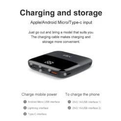 Material: ABS and Metal Product Name: 20000mAh Mini Power Bank Design and Style: Slim and Portable with Digital Display Usage and Purpose: Charge On-the-Go with Dual USB Output Typical Adaptive Scenario: Travel, Outdoor Activities, Emergency Backup Performance and Property: High Capacity, Quick Charge Technology, Multi-Device Compatibility **Efficient Power Management** The 20000mAh Mini Power Bank is a portable powerhouse designed to keep your devices charged and ready for action. Its sleek metal and ABS construction ensures durability while maintaining a slim profile that fits easily in your pocket or bag. The digital display provides real-time information about the power levels, allowing you to monitor usage and plan accordingly. With a dual USB output, this power bank is perfect for charging multiple devices simultaneously, making it an indispensable accessory for anyone on the go. **Versatile Charging Capabilities** This power bank is not just about capacity; it's about versatility. With support for both USB Type C and Lightning inputs, it's compatible with a wide range of devices, including the latest smartphones and tablets. The inclusion of two-way quick charge technology means that you can quickly recharge your power bank as well as your devices, ensuring that you're never left without power. The universal and micro USB output interfaces further expand its compatibility, making it a universal solution for all your charging needs. **Safety and Reliability** Safety is paramount when it comes to power banks, and this one doesn't disappoint. It's equipped with over-discharging, short circuit protection, over-charging, and low tension protection to ensure your devices are safe from harm. The robust metal shell material adds an extra layer of protection, while the ABS material ensures a lightweight yet durable build. Whether you're traveling, camping, or simply need a backup power source, this power bank is designed to meet your needs with reliability and peace of mind.