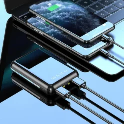 Mini Power Bank 20000mAh With 4 Cable Mobile Phone External Battery Charger for iPhone Samsung Huawei Xiaomi Portable Powerbank