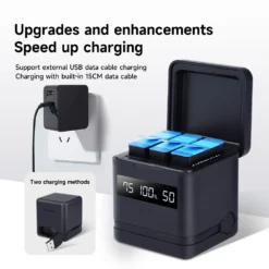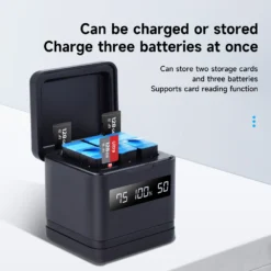 Used with GoPro 12 – first battery worked cca 60min, second 66min. Charger with integrated cable, slot for READ !!! (only with integrated cable) sdcard + slot for storage SD card. Shipment from Polland in 3 days ! Conctor C – only for charging. Time for charge 3 batterie is cca 180min. Charging every 3 bateries together in the same time. In use 1 day. NOW I am very satisfied.