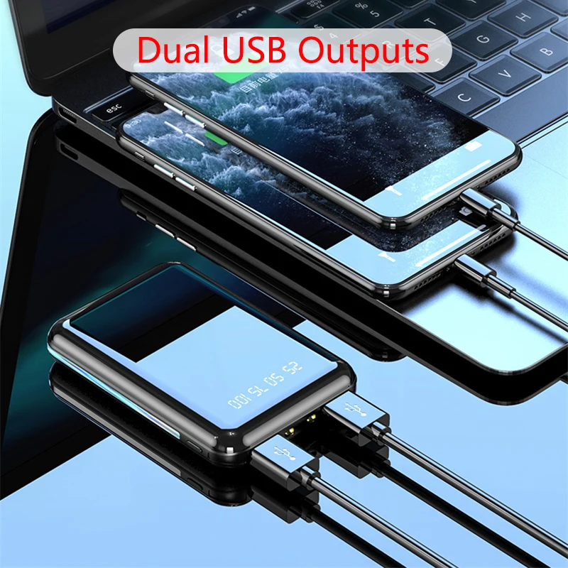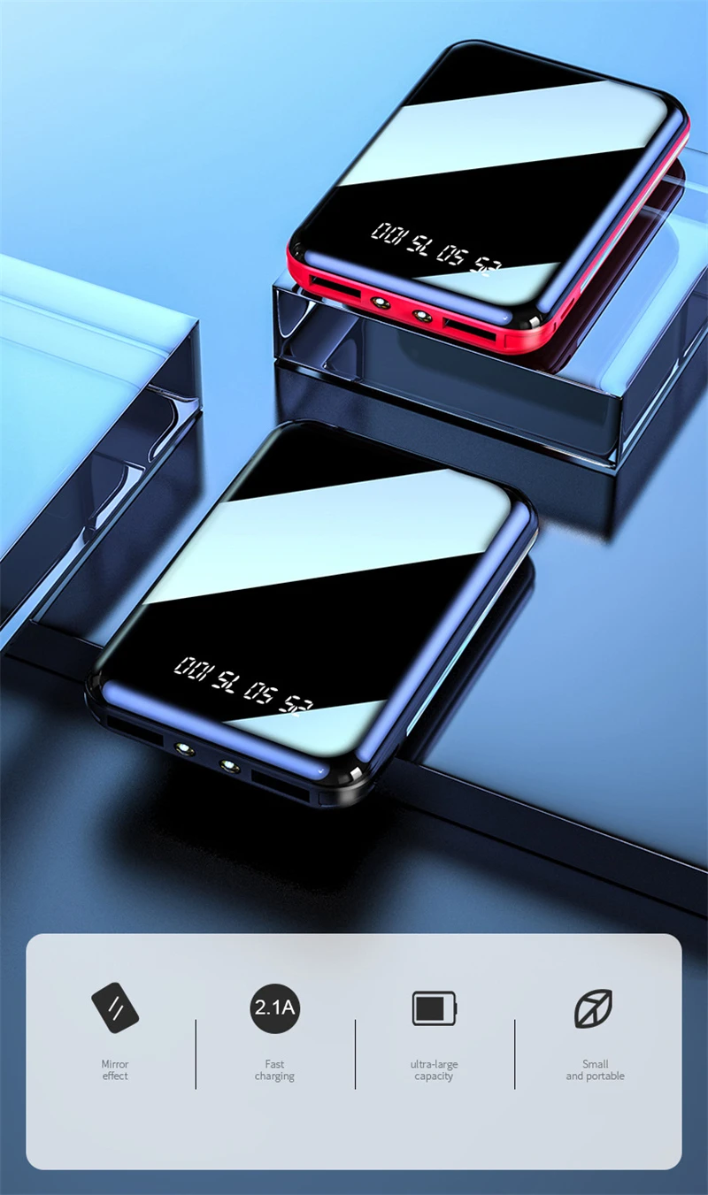 Mini Power Bank 20000mAh Portable Battery Charger for Samsung Xiaomi iPhone 14 Huawei Poverbank Dual LED Light Digital Powerbank