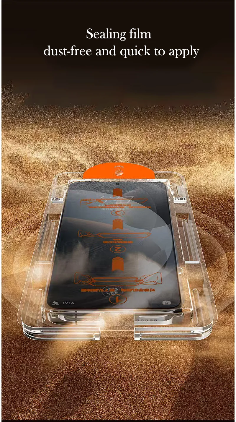 Ultra clear and high transparency, original screen image quality presentation, 9H hardness scratch resistant, wear-resistant and shatterproof edges, 150 ° C curved edge full screen fit without holes design, one pull and one cover for instant pasting