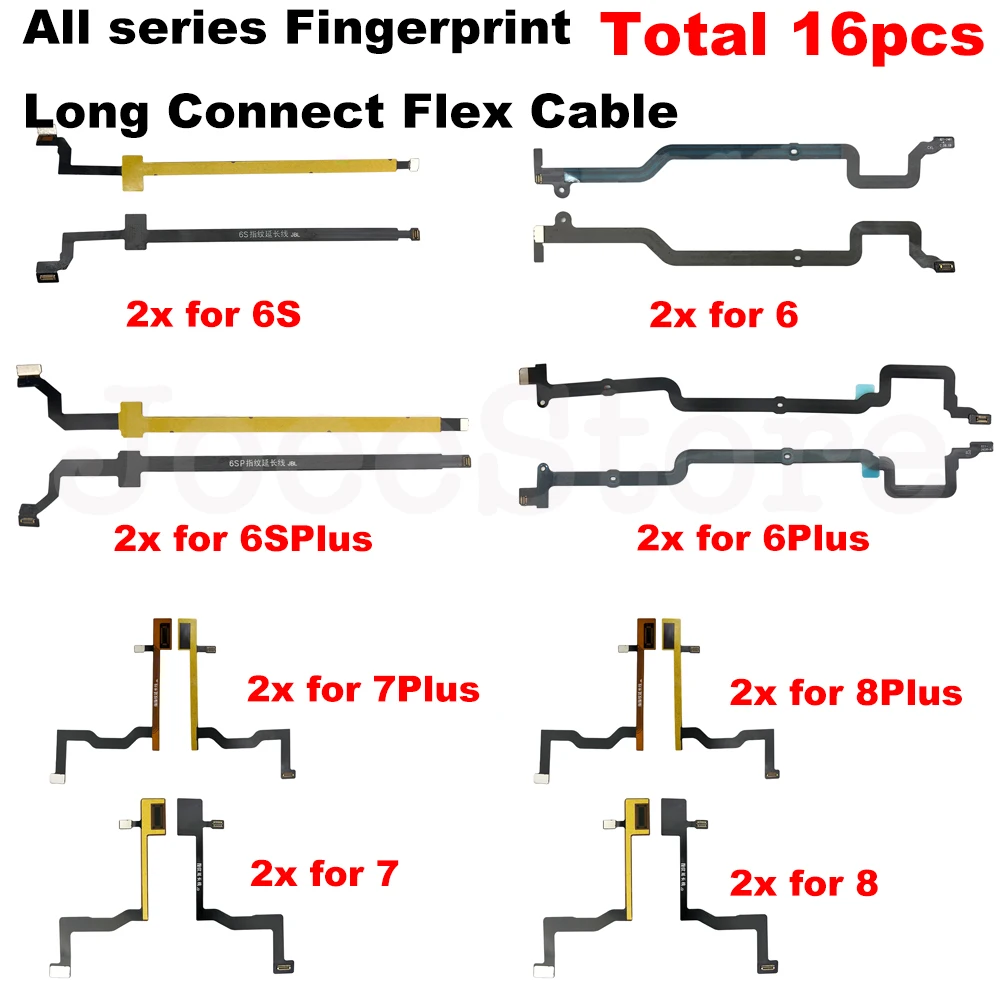 2pcs For iPhone 6 6s 7 8 plus Home Touch ID Return Fingerprint Button Motherboard Interconnect Connector Extend Flex Cable