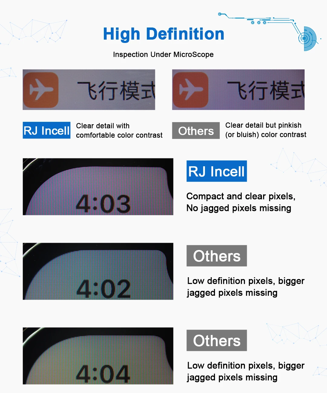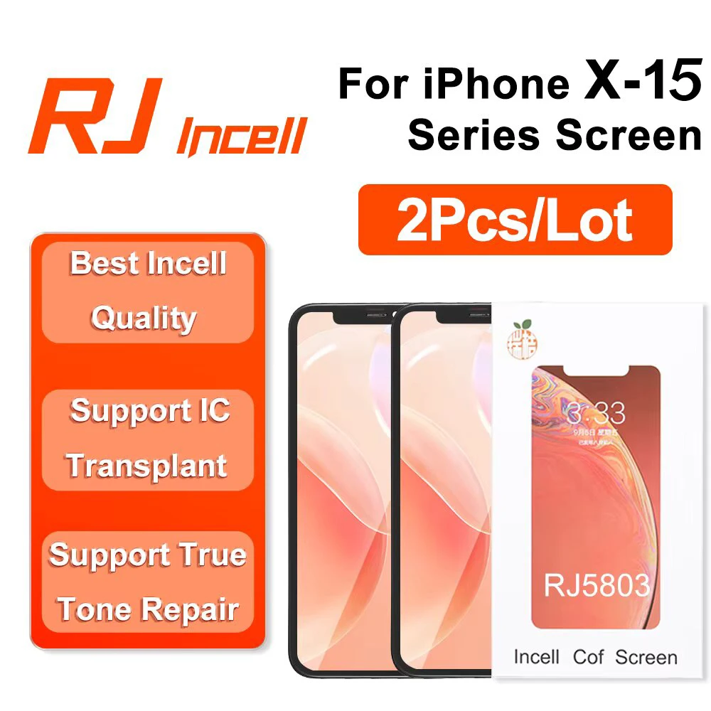 Specifications: Material: High-quality Incell LCD Display Compatibility: iPhone X, XR, XS Max, 11, 12 Pro Max, 13, 14 Pro Max, 15 Pro Max Warranty: Lifetime Warranty Quality Control: Each screen tested before shipping, 100% working Design: Pre-assembled with outer glass, LCD screen, touch digitizer panel, front camera ring, light sensor ring, and dust-proof earpiece mesh Installation: Easy to install, but professional installation recommended Features: |13 Lcd Display|The Best Incell 13 14 15|15 Pro Max For Iphone| **Enhanced Display Quality and Durability** The 2PCS RJ Incell LCD Display Digitizer Assembly is a premium solution for iPhone repair enthusiasts and professionals. Crafted from the best incell technology, this display offers a seamless blend of clarity and durability. The assembly is designed to fit a wide range of iPhone models, including the iPhone X, XR, XS Max, 11, 12 Pro Max, 13, 14 Pro Max, and 15 Pro Max. This versatile display is not only a perfect replacement for damaged screens but also a valuable upgrade for those looking to enhance their device's visual experience. **Effortless Installation and Professional Support** The Incell LCD Display Assembly is a breeze to install, making it an ideal choice for both DIY enthusiasts and professional technicians. Each screen is pre-assembled, ensuring that all necessary components are included, from the outer glass to the touch digitizer panel and front camera ring. The assembly is designed to be compatible with the iPhone's original flex cables, ensuring a seamless integration with your device. The inclusion of the dust-proof earpiece mesh and light sensor ring further enhances the assembly's functionality and reliability. **Reliable and Comprehensive Warranty** We stand behind the quality of our products with a comprehensive Lifetime Warranty. This warranty covers any product quality issues, including returns and refunds, partial refunds, and full refunds. However, it is important to note that the warranty is void if the LCD, flex cable, or frame is damaged during installation. We understand the importance of a reliable screen, which is why each display is tested before shipping to ensure it meets our high standards. We also offer professional support for those who need help with installation or have any technical inquiries. With our commitment to quality and customer satisfaction, you can trust the 2PCS RJ Incell LCD Display Digitizer Assembly to enhance your iPhone's performance and aesthetics.