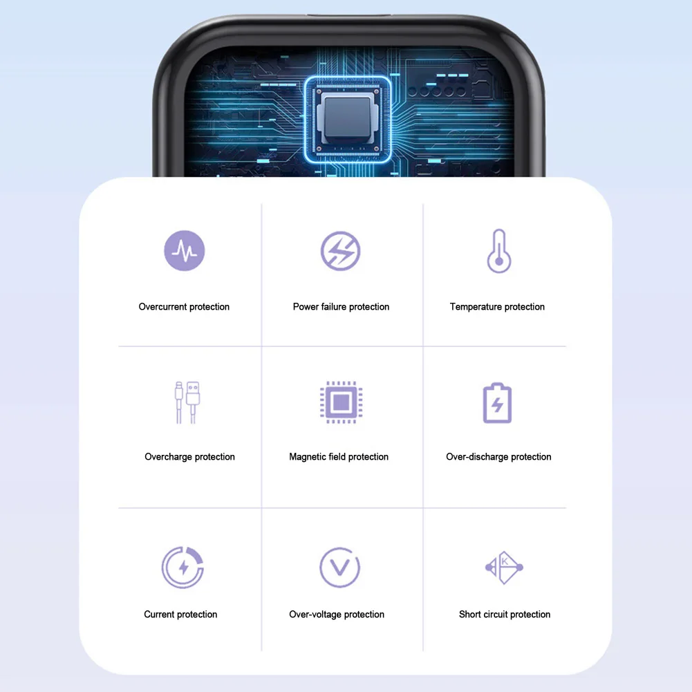 5. Superior Safety Features: The slim power bank is engineered with eight low-temperature ice cores and a comprehensive multi-protection safety system, including temperature control, overcharge protection, and short-circuit protection. This advanced safety system ensures your devices are protected from potential dangers, offering a worry-free charging experience.