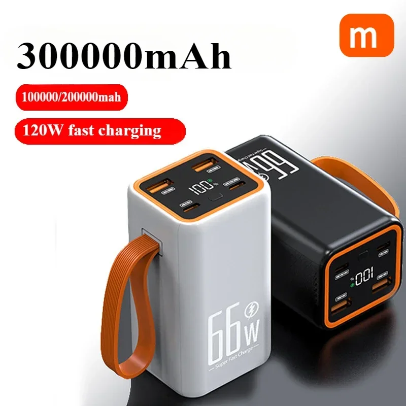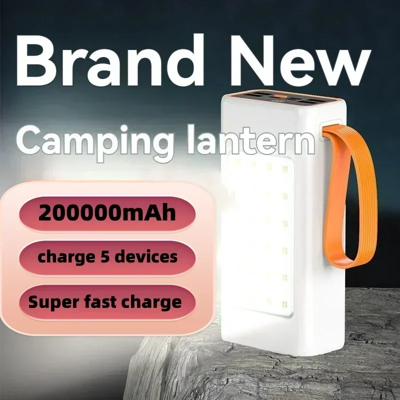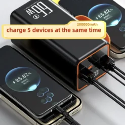 Power Bank 200000mAh Alta capacidad 66W Cargador rápido Batería recargable impermeable para teléfono móvil Computadora Camping Luz LED