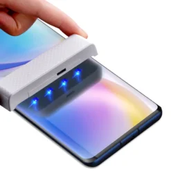 Well packed, I received the set complete with UV lamp. The glass is very easy to apply and covers all the screen