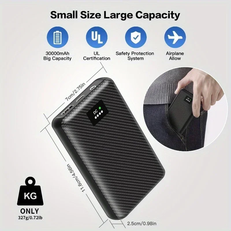 30000mAh Huge Capacity: Large enough capacity battery support up to heat up quickly in 3 seconds, give you 20 hours long-lasting warmth.