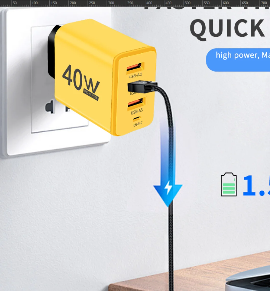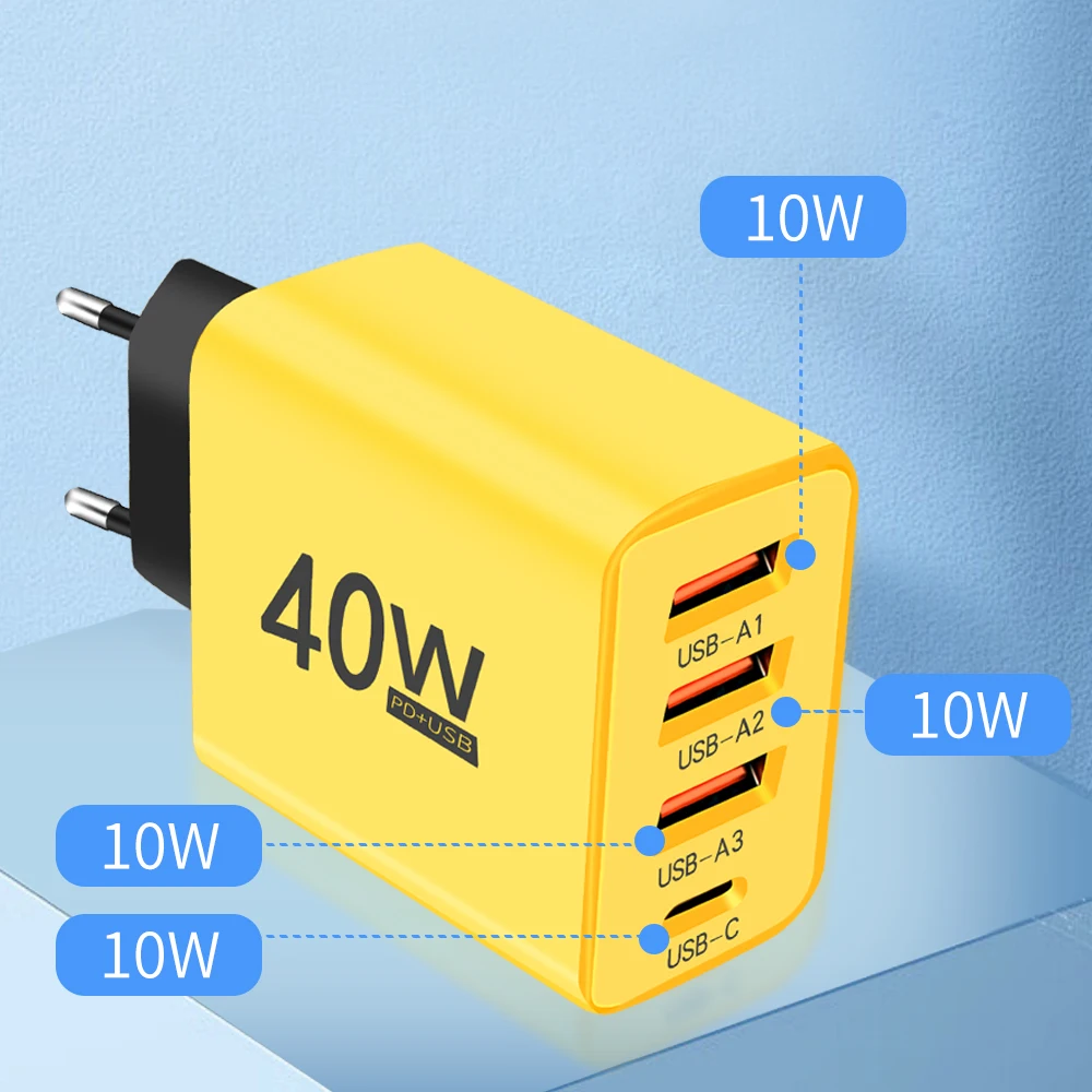 40W 4ports USB type C charger fast charging Wall Charger Quick Charge 3.0 for iPhone Samsung Xiaomi Huawei mobile phone adapter