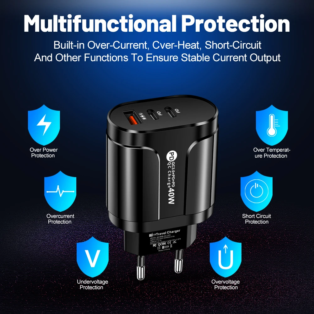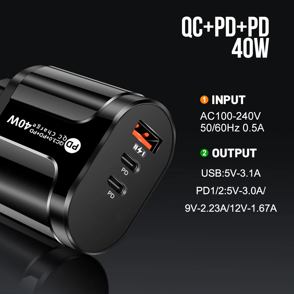 Buy 40W Phone Charging PD Fast Charging USB QC3.0 Multiple 3 Ports Type C Plug Mobile Phone Adapt for Xiaomi High Speed Wall Charger at for . Find more 509, 410204 and 100001205 products. Enjoy ✓Free Shipping Worldwide! ✓Limited Time Sale ✓Easy Return.
