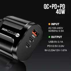 40W Phone Charging PD Fast Charging USB QC3.0 Multiple 3 Ports Type C Plug Mobile Phone Adapt for Xiaomi High Speed Wall Charger – 509