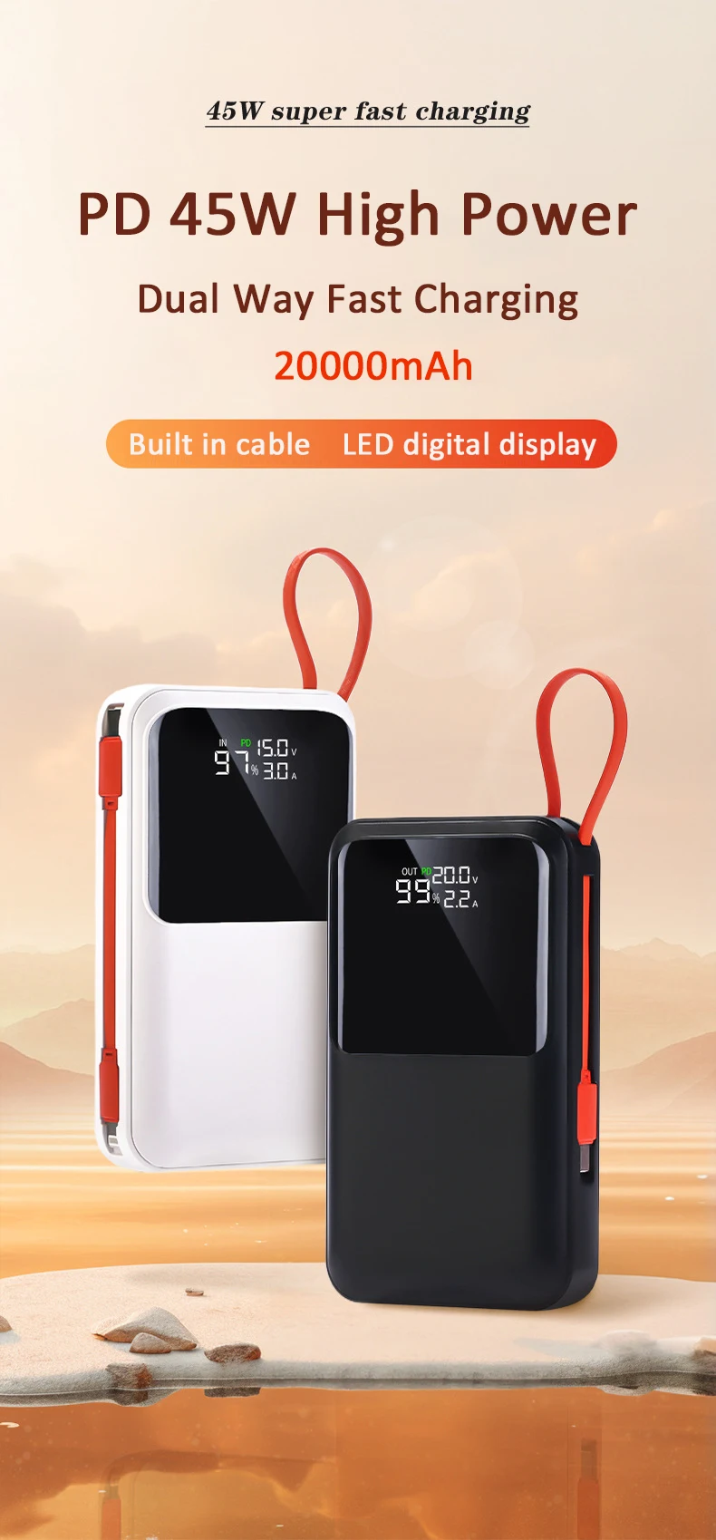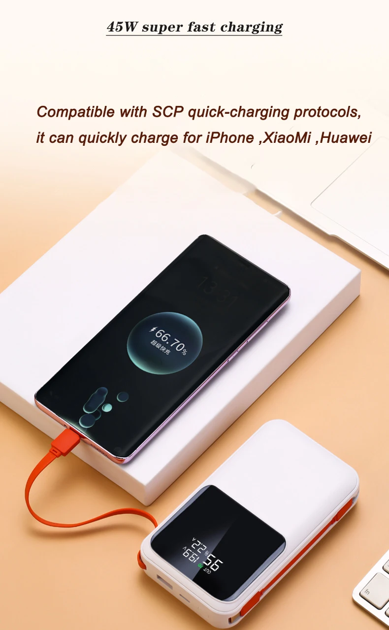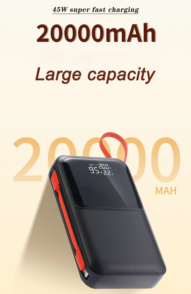 45W Power Bank 20000mAh PD Quick Charing 20000mAh PowerBank Type C External Battery Charger For Phone Laptop Tablet Huawei Xiaomi Poverbank