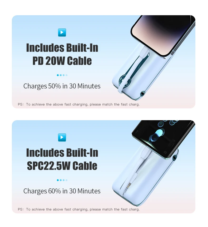 Built in Cables( Type-C Cable/ for iPhone Cable)