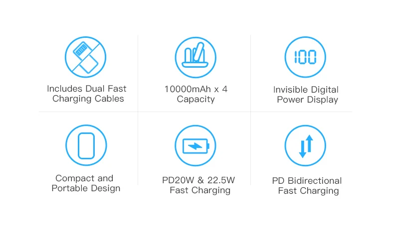 4x10000mAh Power Bank Fast Charging Portable Battery Pack Powerbank with USB Charging Station Cables for iPhone 16 Xiaomi Huawei