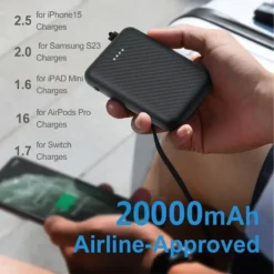 It is small in size and fits in a fever vest pocket. I do not know if the battery capacity is real 50 thousand.