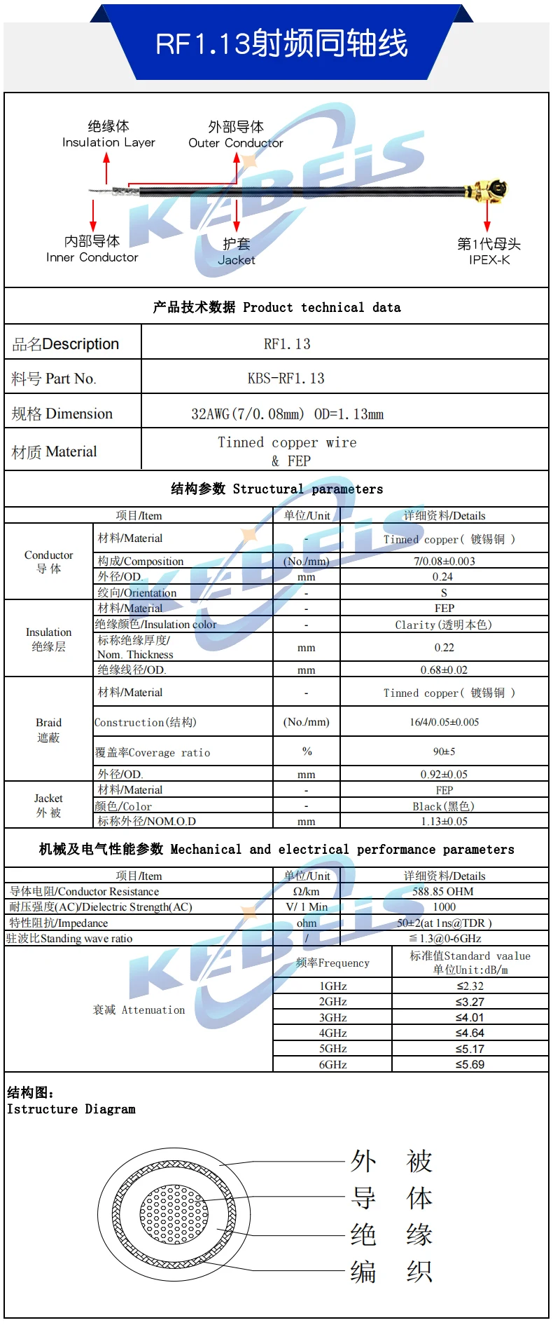 4.Cable type: RF1.13 OD=1.13MM or customized