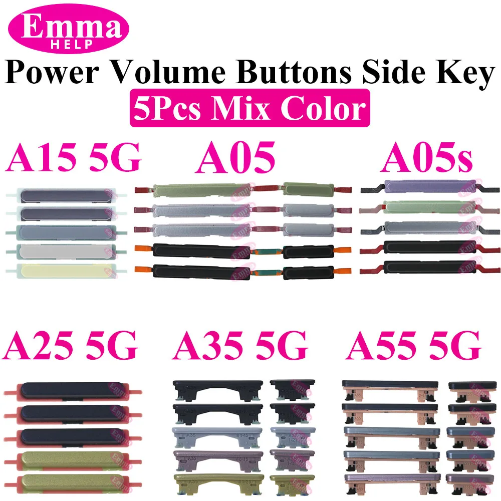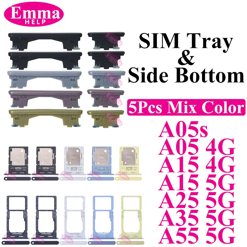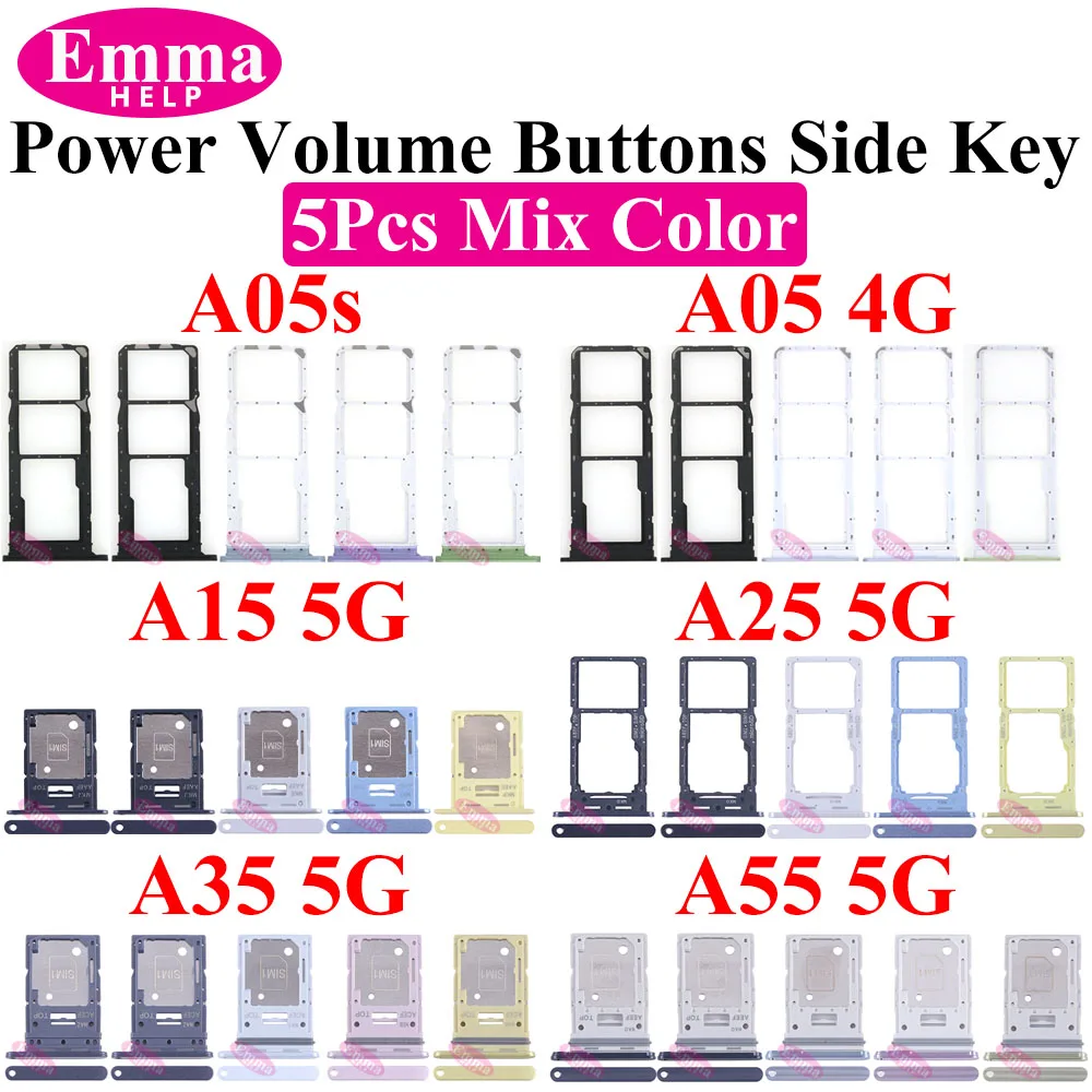 5Pcs Mix Color SIM tray Holder SD Card Power Volume Buttons Side Key On Off Adapter Drawer For Samsung A05 A05s A15 A25 A35 A55