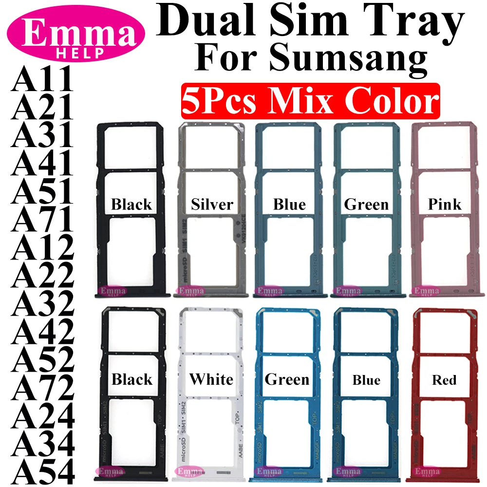 5Pcs Mix Color Phone SIM Chip Holder Slot Adapter Drawer SIM Card Tray Holder Slot For Samsung A11 A21 A31 A41 A51 A12 A22 A32 A42 A52 A72